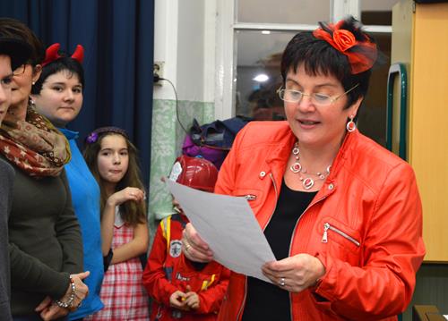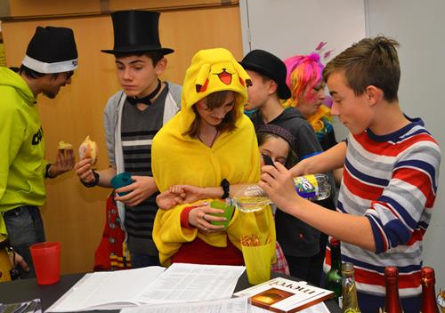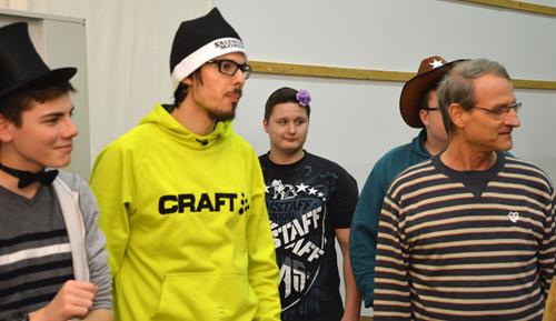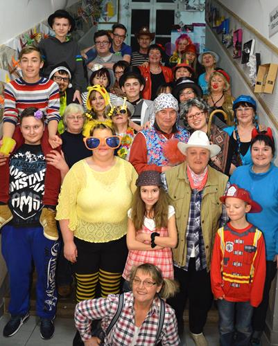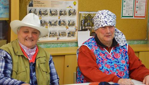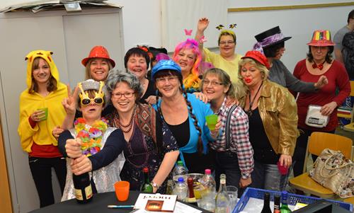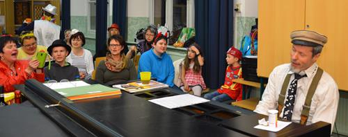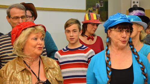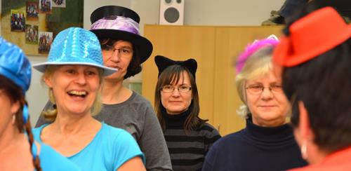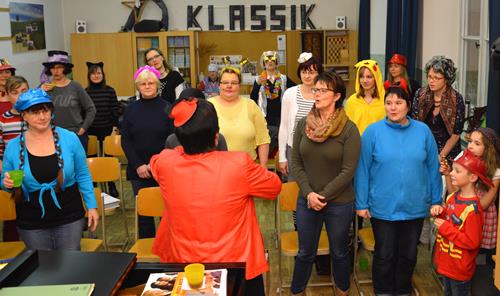 Das war mal eine ganz besondere Probe. Kaum eine/r kam ohne Kostüm. Alle hatten nicht nur ihre Verkleidung und die Lust zum Singen mitgebracht, sondern auch extra viel gute Laune und eine Portion mehr Albernheit. Das zeigte sich u. a. an diversen Schlachtrufen, die immer wieder die Probe unterbrachen und für Ablenkung von allzu ernsthaften Probenphasen sorgten, im spontanen An- und Einstimmen von bzw. in diverse Stimmungslieder oder auch darin, dass der Chor diesmal von seiner zweiten Vorsitzenden mit einer in Versen geschriebenen Einsinge zur Lockerung und zum richtigen Atmen animiert wurde. Neben den „üblichen” alkoholfreien und sängerfreundlichen Getränken und diversen Naschereien fürs Gemüt wurde der Chor von seinen treuen Ehrenmitgliedern Gisela und Rainer Rosin mit einer ganzen Stiege Pfannkuchen überrascht. Das ließen wir uns wohl gefallen! Und als Novum kann man konstatieren, dass diesmal sogar der Chorleiter über seinen eigenen Schatten gesprungen ist und zum Probenbeginn in Verkleidung an- und eintrat, um die Probe auf diese optisch leicht verschobene Art und Weise zu leiten.