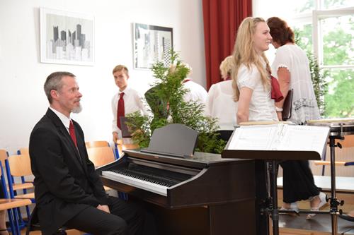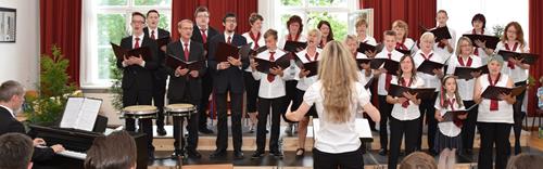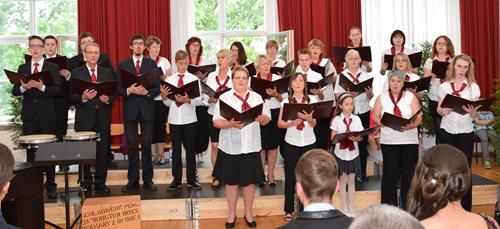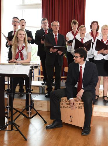 Zur feierlichen Übergabe der Abiturzeugnisse an die 37 diesjährigen Absolventen des Freien Gymnasiums Penig trug unser Chor wieder das Seinige bei: Wir eröffneten die Veranstaltung mit der Studentenhymne „Gaudeamus igitur“, die auch gleich zum Einzug der Abiturienten genutzt wurde. Zwischen den einzelnen Redebeiträgen setzten wir fort mit den feierlichen bzw. zum Nachdenken anregenden „Ave verum corpus“ sowie „Das ist der einfache Frieden“ und dem passenden und etwas jugendlicheren „With a little help from my friends“. Als Überleitung zum dann anstehenden Abiball beendeten wir den Festakt mit Bob Chilcotts: „Shake the bottle“, frisch und frech und nicht sentimental, ganz wie von der Schulleiterin gewünscht.