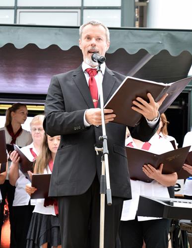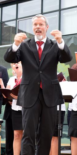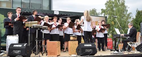 Auf den Bildern gut zu sehen sind unsere beiden „Wake me, shake me“-Solisten Max und Martin, ganz unterschiedliche Stimmungen bei Martin/Marcel und Ramona zum selben Zeitpunkt und dass uns unser Chorleiter nun schon zum zweiten Mal mit einem extravaganten Krawattenknoten überraschte, noch dazu einem anderen als beim letzten Auftritt. Lässt das jetzt für die nächsten Konzerte Spekulationen zu? Wir werden sehen.