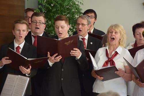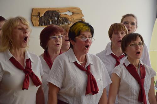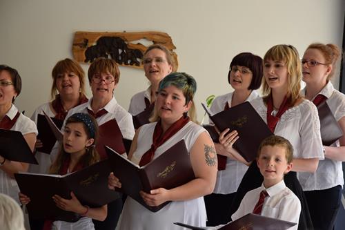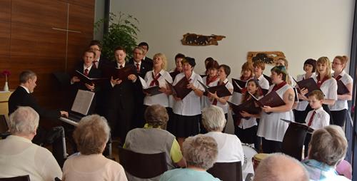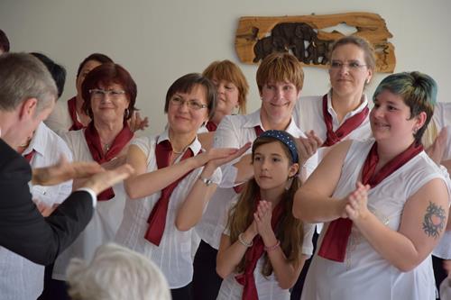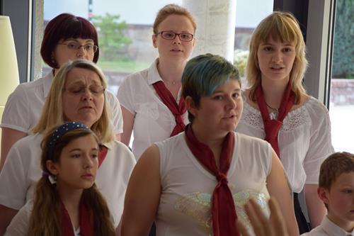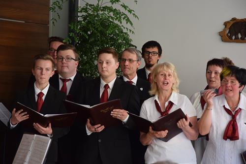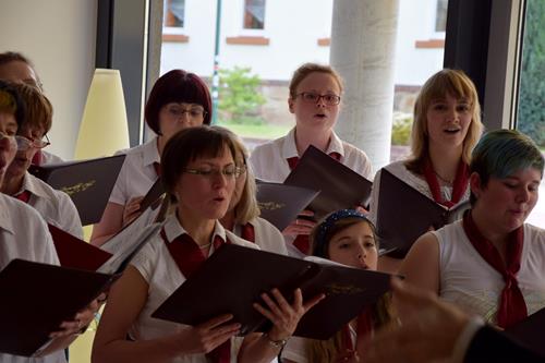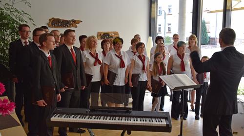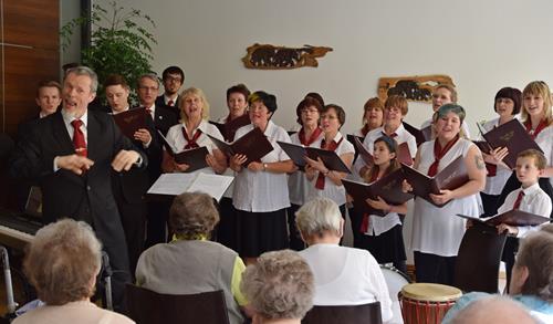 Das ist dem Chor vermutlich auch gelungen, denn die Zuhörer hatten vor allem bei den altbekannten Volksliedern sichtlich Spaß am Mitsingen. Auch das von uns zu Ehren Hanna Maria Dracks einstudierte Lied „Es rauscht im Hain der alte Lindenbaum“ stieß beim Publikum auf positive Resonanz.