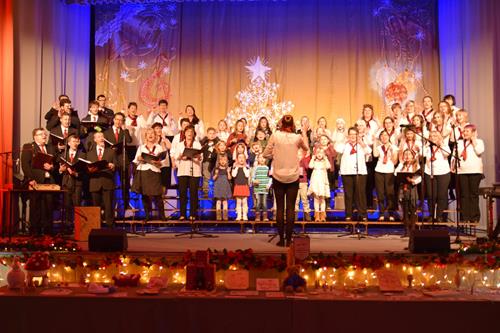 Im fast ausverkauften Kultur- und Schützenhaus startete unser Weihnachtskonzert, ähnlich wie schon das Herbstkonzert, auf ungewöhnliche Weise: Zum Eröffnungslied „Sind die Lichter angezündet“ standen wir rund um das Publikum im sanften Schein der Teelichte auf unseren Händen. Der Chor der Erich Kästner Grundschule sang von der Bühne aus und war somit gut zu sehen und zu hören. Auf diese Art zog schon gleich zu Beginn ein Hauch Weihnachtsatmosphäre ein.