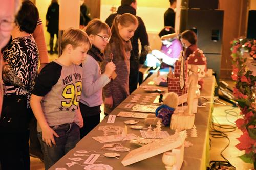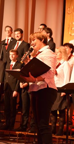 Außerdem erklangen zahlreiche traditionelle Lieder, die oftmals neu arrangiert worden waren, wie z. B. die sechsstimmige Fassung des Titels „O come all ye faithful“ im Satz der Gruppe Take 6, der von sieben Solisten aus unserem Chor ausgeführt wurde, oder „Ach, bittrer Winter“ in der „Version 2.0“ mit neu gestalteter zweiter Strophe. Ein weiteres Ensemblestück, im Doppelquintett gesungen, insgesamt über 20 weihnacht- und winterliche Weisen sowie die Ansagen und Gedichte von Katrin Tischer trugen dazu bei, alle Anwesenden in winterliches Träumen und vorweihnachtliches Schwelgen zu versetzen. Das wunderschöne neue Bühnenhintergrundbild, das von unserer Sopranistin Simone Berlich gestaltet wurde, die Delikatessen der Bäckerei Dietze sowie die Schnitzer und Klöppler vom Verein für volkskünstlerische Heimarbeit bildeten einen stimmungsvollen Rahmen für unser Konzert.