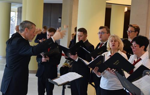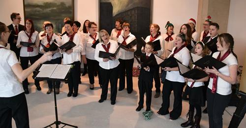 Für uns war es auch in diesem Jahr eine Ehre, mit vielen anderen wunderbaren Chören im Gewandhaus singen zu dürfen. Nach unserer Darbietung im Foyer, bei der sich die Zuschauer von unserem Gesang mitreißen ließen und vor allem beim „Krippenspielfragment“ schmunzeln und lachen mussten, folgte das Festkonzert im Großen Saal des Hauses. Vier Chöre präsentierten sich auf der Bühne und alle Ensembles sangen drei Titel gemeinsam und mit dem Publikum. Das ist ein beeindruckender Klang!