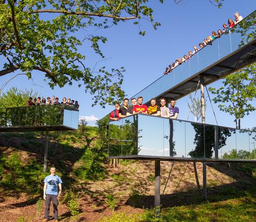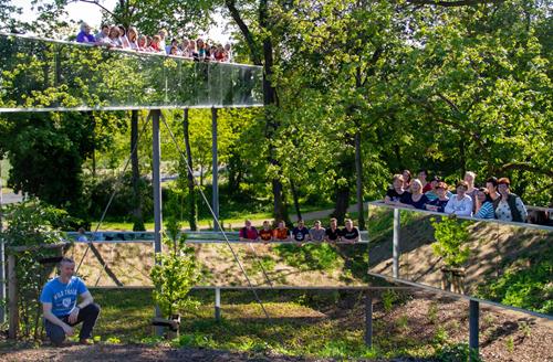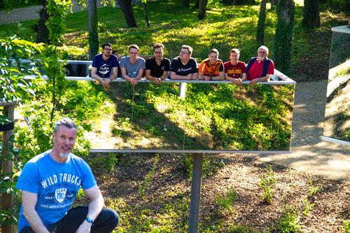Am Samstag rückte unerwartet ein Fototermin in unser Tagesprogramm, was zweifelsohne eine gute Gelegenheit war, den umstehenden Besuchern des Parkes eine Kostprobe aus unserem Repertoire zu geben. Einige der dort entstandenen Bilder sind hier unten zu sehen – es sind die mit den verspiegelten Brückenteilen. Sieht es nicht ein bisschen so aus, als würden wir in der Luft schweben?