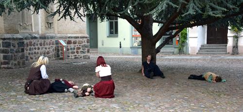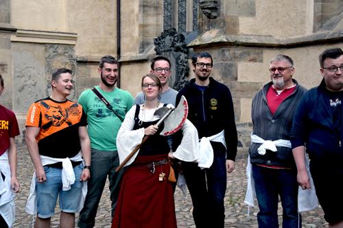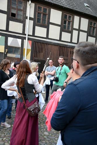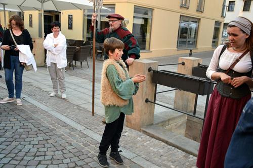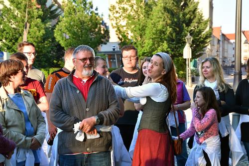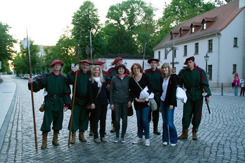 Die abendliche Stadtführung der etwas anderen Art ließ uns in die Zeit des Mittelalters eintauchen und wir konnten vor allem durch die Laiendarsteller einen lebendigen Eindruck u. a. von Pestbeulen und Stadtwache bekommen. Auch hier beglückten wir die Mitwirkenden mit einem passenden Kanon. Sie waren sichtlich überrascht und begeistert.