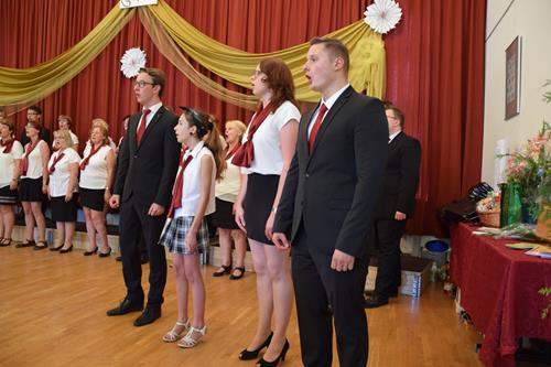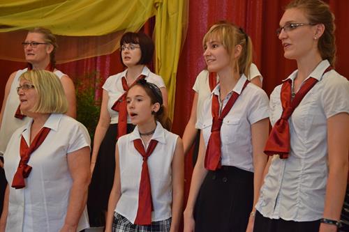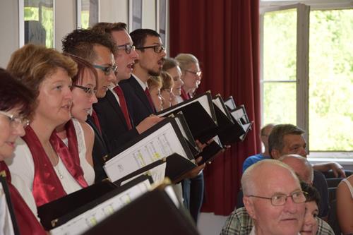 Die Reihen waren trotz der hohen Temperaturen gut gefüllt, und wir freuten uns, dass auch zahlreiche Ehrengäste, darunter unser Bürgermeister Thomas Eulenberger mit seiner Frau, der Leiter des Akkordeonorchesters Penig e.V., Steffen Riedel, Thomas Gerhard mit Partnerin als Vertreter der Sparkasse Mittelsachsen und Karin Weninger als ehemalige Dirigentin des Chores, unserer Einladung gefolgt waren.