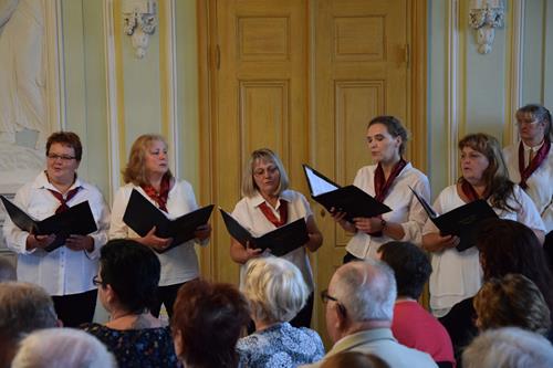 Dass der Hall in diesem romantischen Saal eine gute Bedingung für unseren Gesang darstellt, konnten wir bereits bei früheren Auftritten erfahren. So haben wir uns mit viel Vorfreude, Elan und gut vorbereitet ans Werk gemacht und dem Publikum eine abwechslungsreiche Auswahl unserer u. a. Lieblingsstücke dargeboten. In diesen ging es getreu dem Motto um Liebe, Lebensfreude, Leichtigkeit, schöne Zeiten – eben um positive und angenehme Dinge des Lebens.