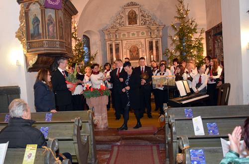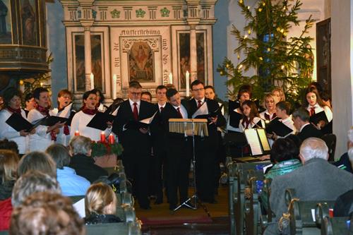 Wer von den Sängern noch nicht bei einem Konzert in Niedersteinbach dabei war, geriet beim Betreten der Kirche erst einmal ins Staunen. Durch ihre Winzigkeit strahlt das Gotteshaus sehr viel Gemütlichkeit aus, was sich auch auf die Stimmung der einzelnen Sänger auswirkte. Und darüber hinaus konnte man beim Betrachten der Wandmalereien leicht ins Staunen kommen. Dass die Kirche dazu auch noch gut gefüllt war, machte den Auftritt für uns als Sänger fast perfekt und motivierte natürlich für das darzubietende Programm und den Anschlussauftritt in Garbisdorf.