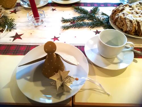 Mit viel Liebe war die Kaffeetafel von den Mitgliedern der Kirchgemeinde gedeckt worden, jeder hatte einen selbst gefertigten kleinen Stern auf seinem Platz. Es sind oft die kleinen Dinge, die auch uns Sänger dankbar machen und uns Freude an so viel Gastfreundschaft schenken.