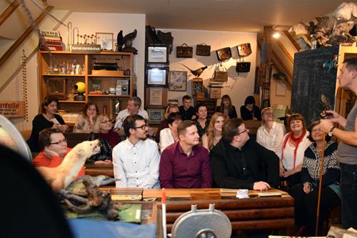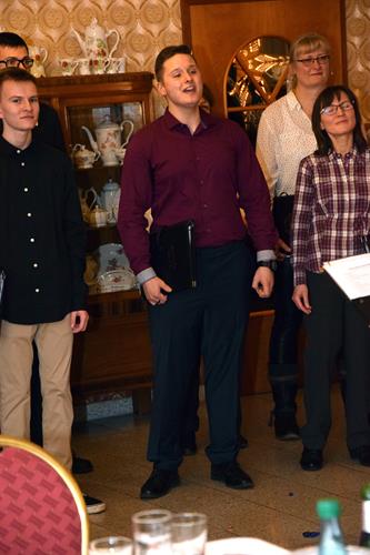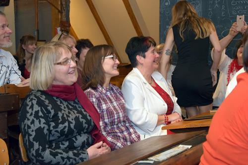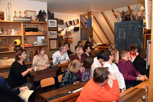 Danach waren alle Sänger zum gemeinsamen Essen und Verweilen eingeladen. An der Lautstärke war zu erkennen, dass sich jeder prächtig amüsierte. Und der Höhepunkt des Abends war eine Schulstunde im Dachgeschoss der Alten Schule. Der Restaurantbesitzer fragte das Wissen in verschiedenen Schulfächern und etwas Schulgeschichte ab. Er hatte für jeden einen flotten Spruch auf den Lippen, so dass es nicht langweilig wurde. Alle, die im Sozialismus groß geworden waren, wurden bei der Schulstunde auch davon ein wenig eingeholt.