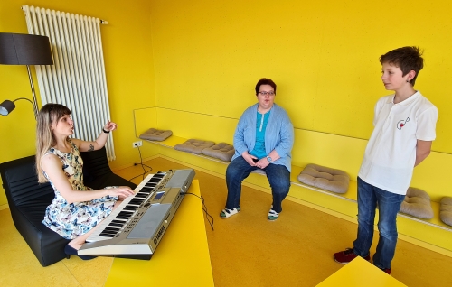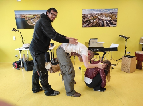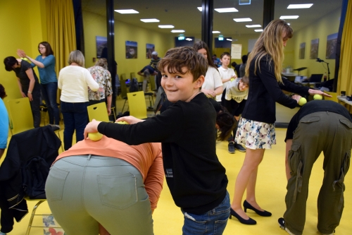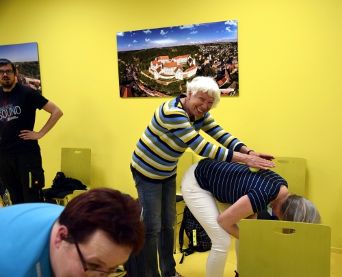 Natürlich haben wir auch geprobt: Gemeinsam, in kleinen Gruppen an der Aussprache der ausländischen Titel, an der „Bedienung” der Rhythmusinstrumente, an der Stimmbildung, den Tanzschritten und diversen Nasalen. Insbesondere das Einsingen mit der Tennisball-Massage fand viel Zustimmung und brachte weitere Verwöhnmomente, die nicht einmal dick machen.
