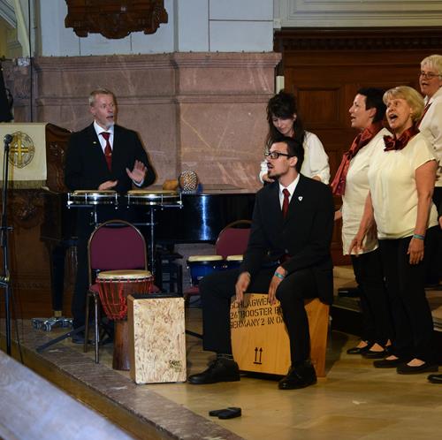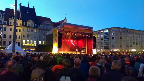 Wir konnten, wie schon gesagt, leider nur einen verschwindend kleinen Teil von Konzerten der anderen Chöre und Ensembles wahrnehmen, aber das war schon beeindruckend: ob das der Thomanerchor war, die Gruppe „Basta“ aus Köln, die A-cappella-Techno-Band „YeoMen“, der Jazzchor Dresden, der Rundfunkjugendchor Wernigerode unter Leitung von Robert Göstel, welcher ja auch mit uns schon mal einen Workshop durchgeführt hat, oder andere Ensembles, die auf Freilichtbühnen, in Kirchen und Sälen und sogar im Leipziger Stadtbad, das zu einem Auftrittsort umfunktioniert wurde, auftraten. Schön war hier z. B., dass hier in der Pause Singende aus verschieden Chören plötzlich anfingen, gemeinsame Lieder zu singen, wie z. B. „Engel“ oder „Viva la vida“.