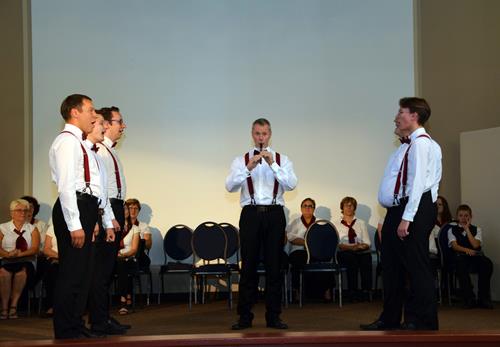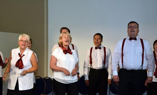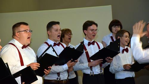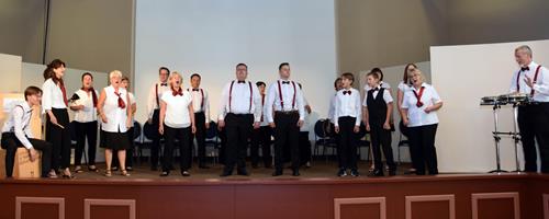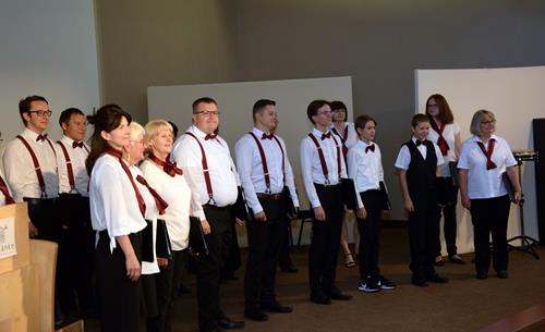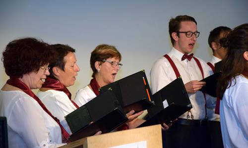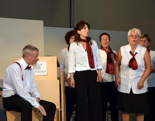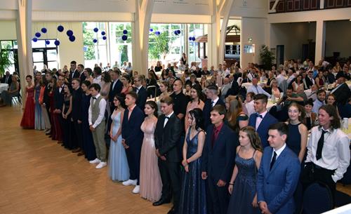 Nach Christoph Willibald Glucks feierlichem Chorsatz „Füllt mit Schalle“ boten wir natürlich auch noch Moderneres und Peppigeres, aber immer Titel, die zu diesem Anlass passen. So die „Ode an die Heimat“ von Oliver Gies, die mit ihrer WLAN-Thematik für junge Leute, aber auch für Lehrer, immer wieder interessant ist, „Viva la vida“ von Coldplay oder das für einen Abschlussball sehr angemessene „Shake the bottle“ von Bob Chilcott, um nur einige zu nennen.