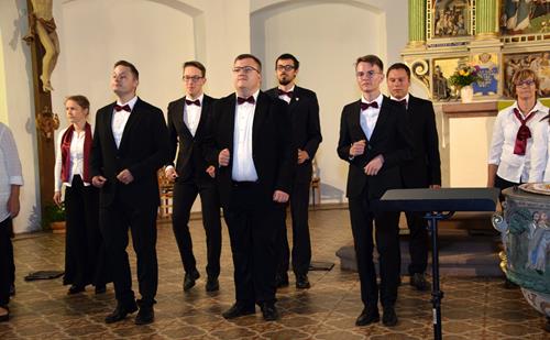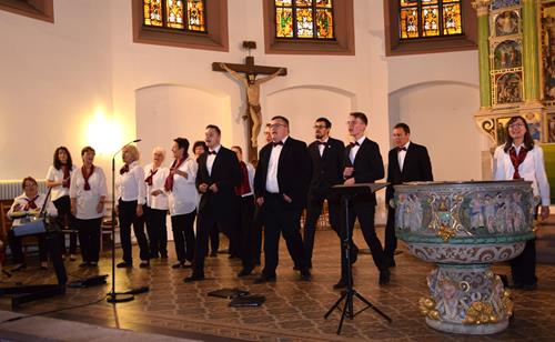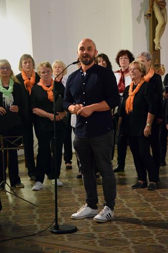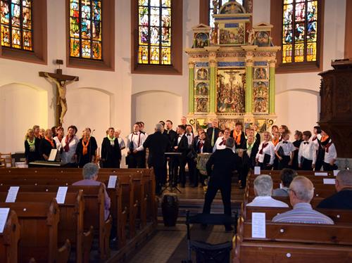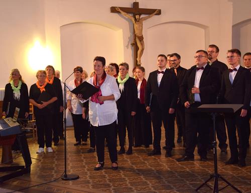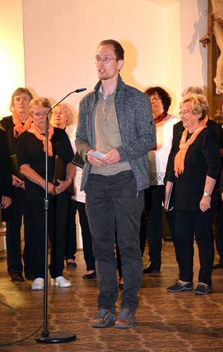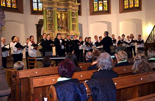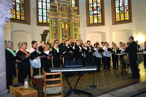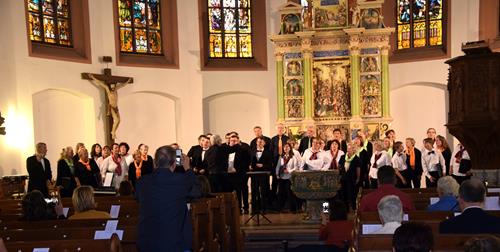 Wir freuten uns zuerst über die große Menge an Publikum, die anwesend war, dann über die schöne Akustik in der Kirche, verbunden mit genügend Platz für alle ca. 50 Sängerinnen und Sänger und nach der Veranstaltung über die Spendensumme von über 1200 Euro, die wir zwei Tage später an Matthias Mühlbauer vorerst symbolisch übergeben konnten.