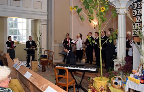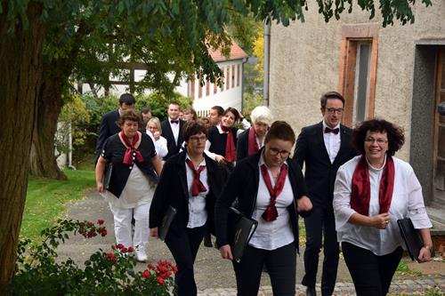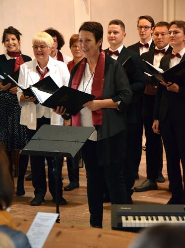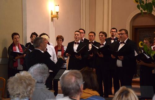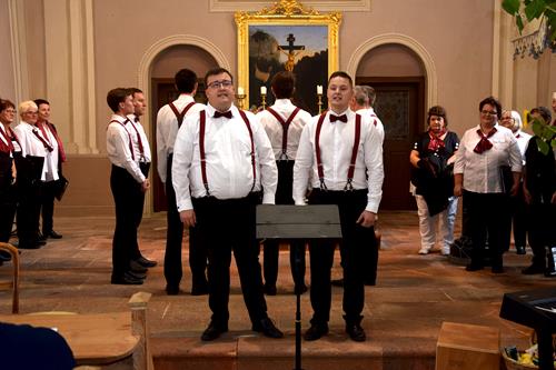Diesmal konnte man schon von außen sehen, wer im Innern der Oberhainer Kirche probt und später auftreten wird. Nachdem wir bereits beim Ansingen in der Kirche einen angenehmen Eindruck von ihrer Klangwirkung bekommen hatten, wurde dieser noch von der Anzahl und der Begeisterung der Konzertbesucher übertroffen. Es war eine solche Freude, in dieser guten Akustik vor so freundlichen und dankbaren Menschen singen zu dürfen, dass die reichliche Stunde wie im Fluge verging.