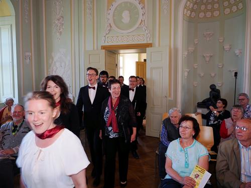 In bewährter Tradition führten wir unseren Mix aus Liedern der verschiedensten Epochen, Stilrichtungen und Sprachen auf und konnten damit den Gästen berührende und erheiternde Momente liefern und sie mitnehmen in unseren Kosmos aus Klang gewordenen Emotionen und Harmonien.