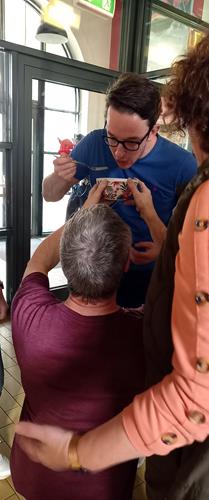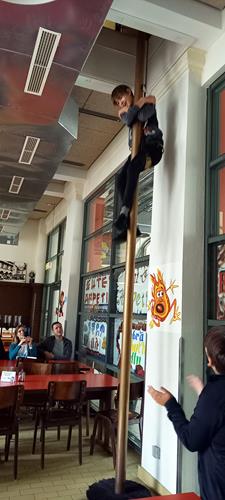 So verflogen die drei Tage mit Gesang, viel Miteienanderzeit, Fotoshootings und den besonderen Höhepunkten wie im Flug, doch bevor wir den Heimweg antraten, nutzten einige von uns die Gelegenheit, mal eine Feuerwehr-Rutschstange auszuprobieren, und der Chor verabschiedete sich standesgemäß mit der „Klingenden Speisekarte“ bei den Mitarbeitern der Küche.