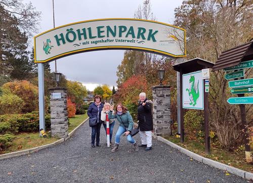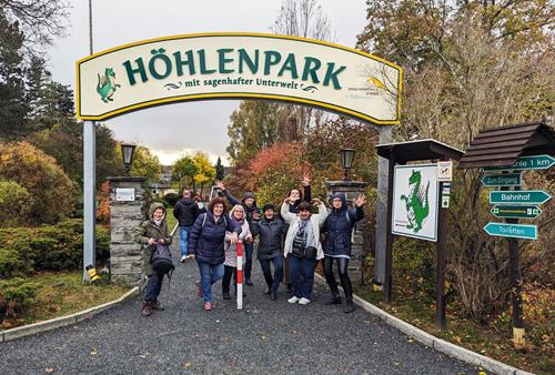 Zu unserem Aktivwochenende gehörte dann natürlich wie immer ein gemeinsamer Ausflug, der uns diesmal in die Drachenhöhle Syhrau führte. In zwei Gruppen, weil wir für eine einfach zu viele waren, wurden wir unterhaltsam und lehrreich an Stalagmiten, Stalaktiten und lebewesenlosen glasklaren Höhlenseen, alles sehr beeindruckend, erst in die Tiefe und zum Glück auch vollzählig wieder zurück ans Licht geführt. Zum Abschluss bekamen wir eine musikalisch unterlegte Lasershow zu sehen. Als Dank sang eine Truppe dem Bergführer das „Steigerlied“ – ein passender Abschluss in steiniger wunderschöner Kulisse.