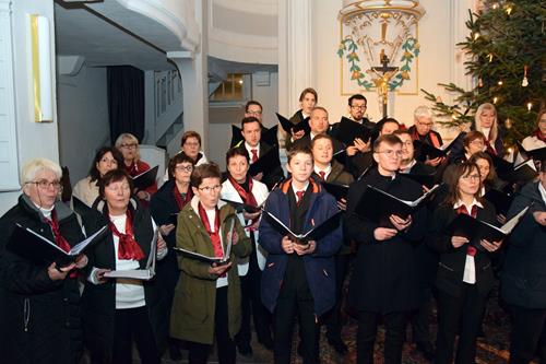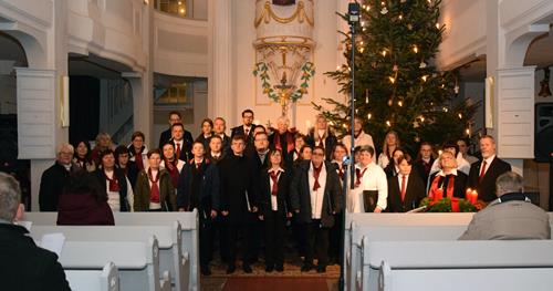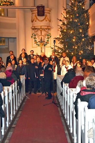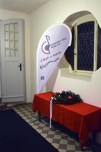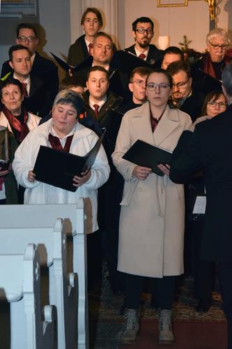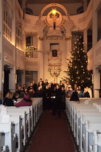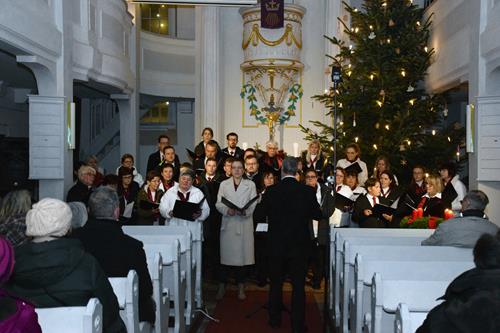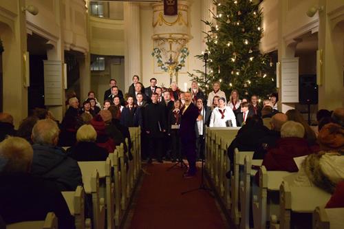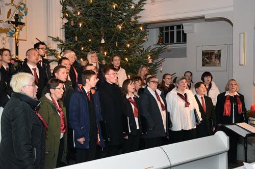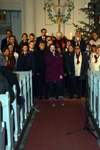 Zwischen den lauten Tönen der Blechbläser boten unsere eher sanften Klänge, die wir zum Teil sogar in kleiner Ensemblebesetzung darboten, eine schöne Abwechslung, was vom Publikum mit viel Applaus bedacht wurde. Wenn es auch sehr kalt war in der Kirche, konnten wir spüren, dass „irgendwas im Herzen geschieht“ – sowohl bei uns selbst als auch bei den Gästen, die sogar während unseres Abgangs nach draußen im Gleichtakt weiterklatschten. Wie schön, wenn wir mit unseren Liedern eine solche Freude schenken und ein bisschen Vorweihnachtsgefühl verbreiten konnten!