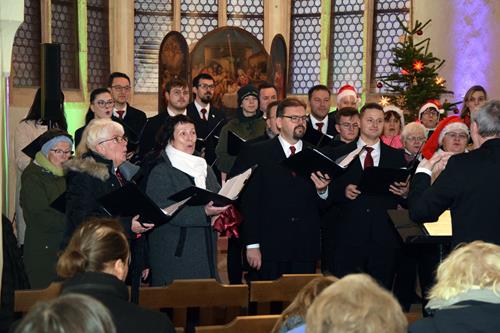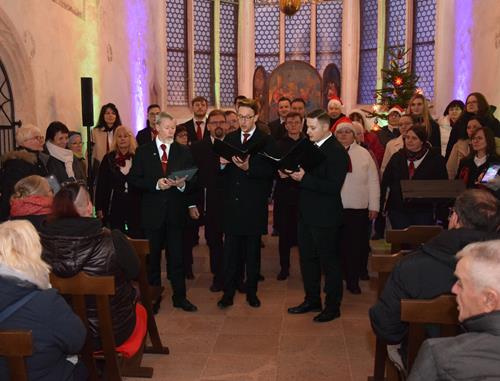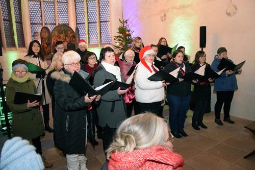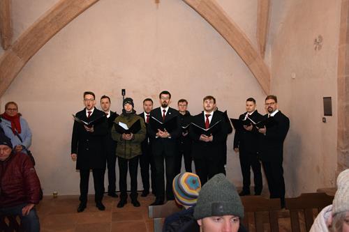 Es macht uns natürlich stolz und froh, wenn wir mit den von unserem Chorleiter-Team perfekt ausgewählten Liedern in der hübschen, kleinen Kapelle für die zahlreich hereingeströmten Zuhörer vorweihnachtliche Besinnung und berührende Gefühle verbreiten konnten. Mit „Ave Maria“ und „O du stille Zeit“ boten wir dem vor der Tür stattfindenden Weihnachtsmarkt-Trubel trotz der kalten Räumlichkeit einen wärmenden und beruhigenden Kontrast.