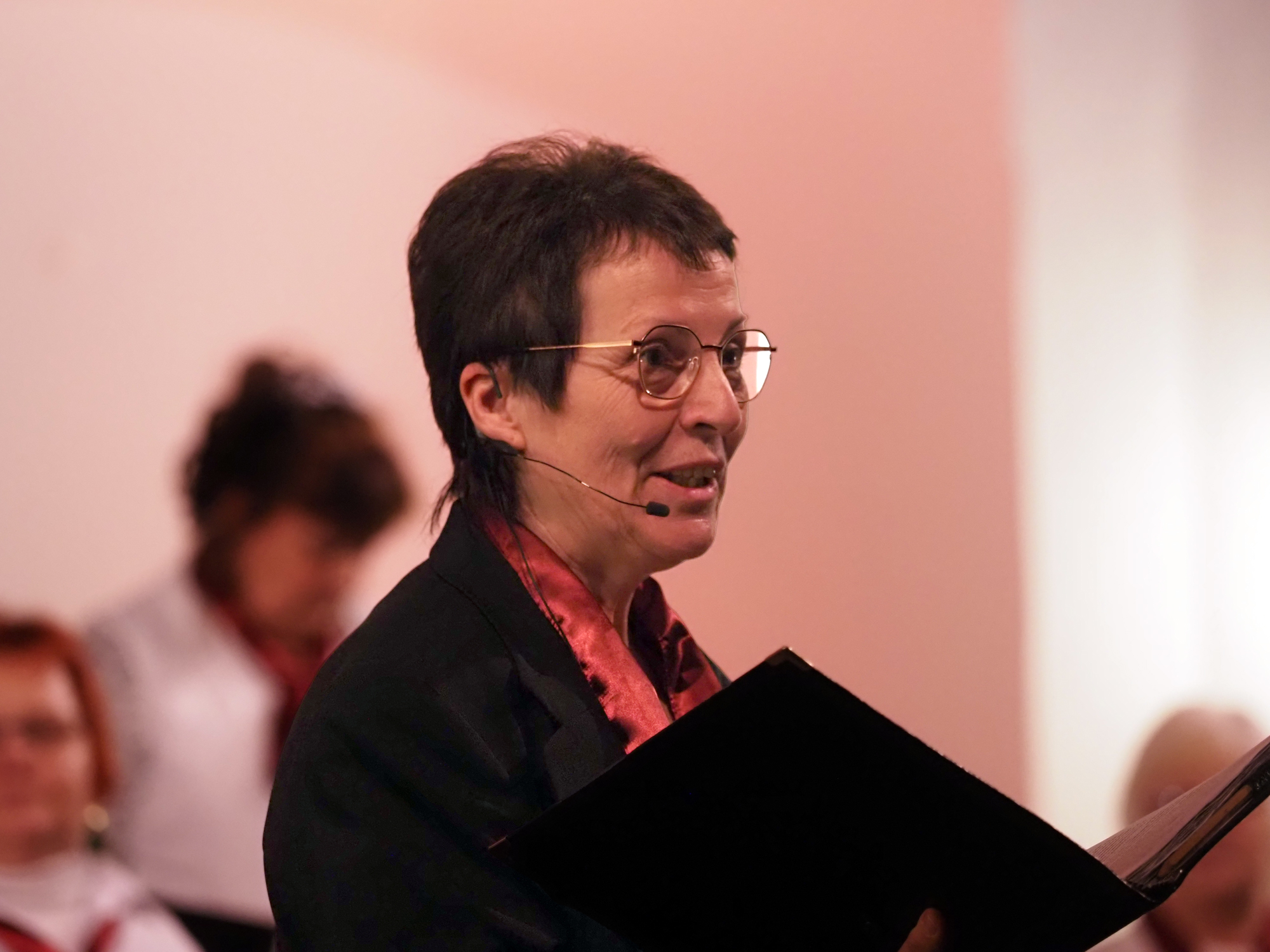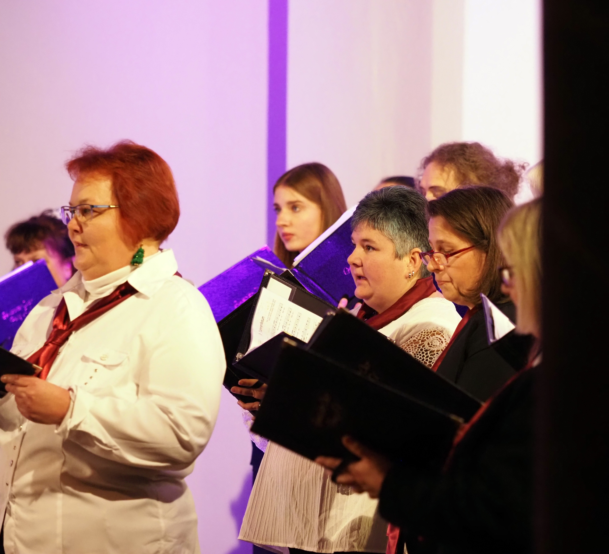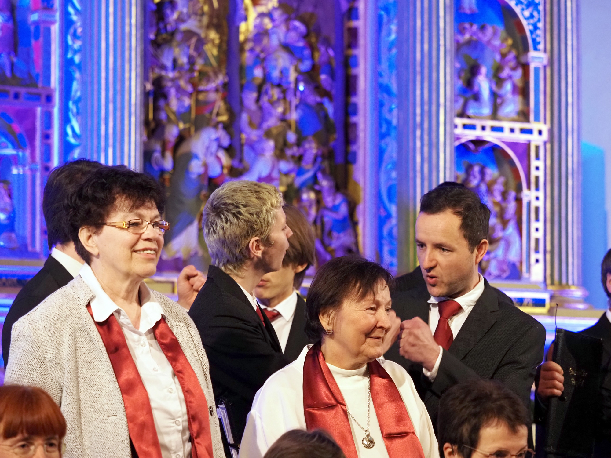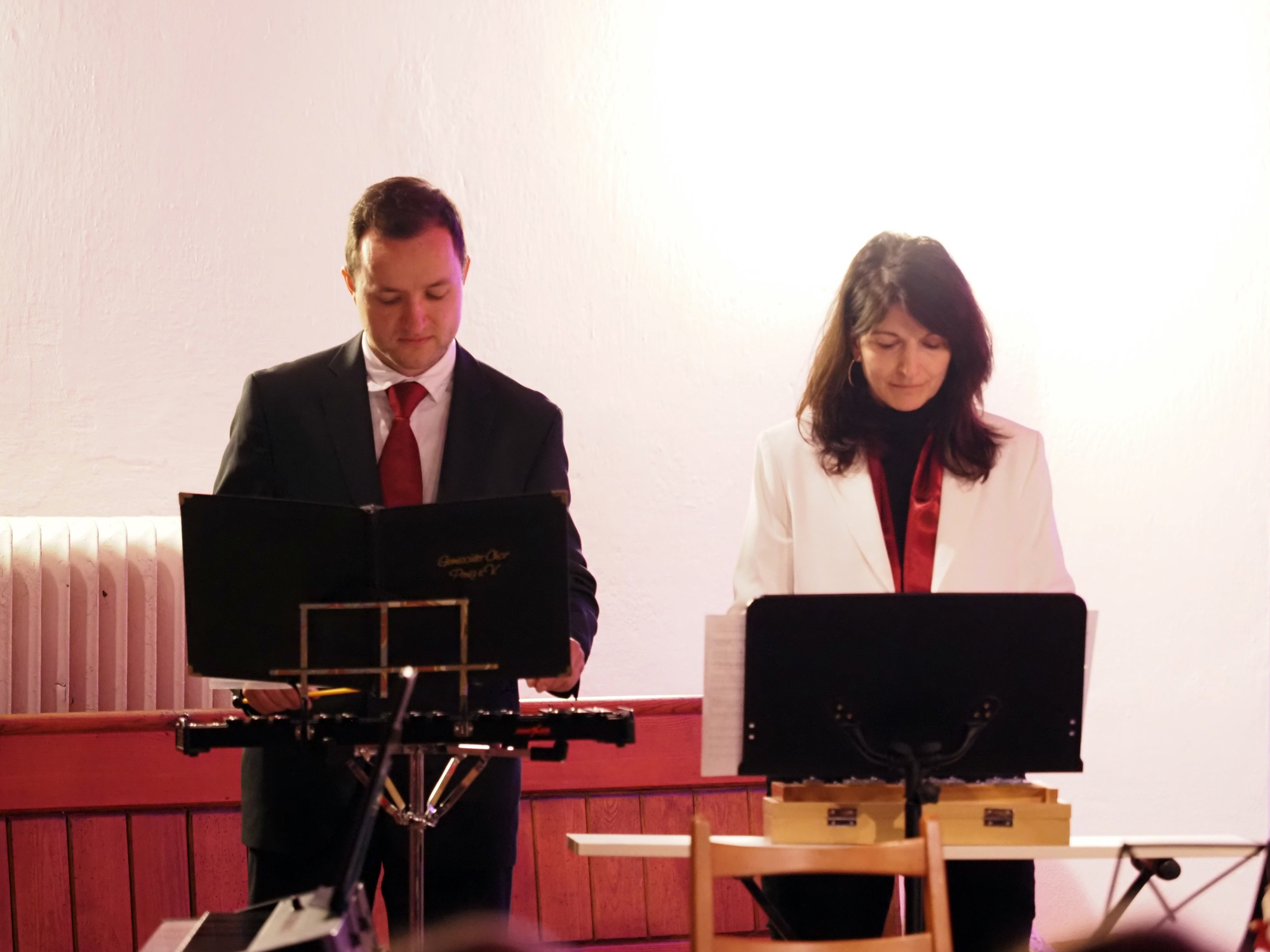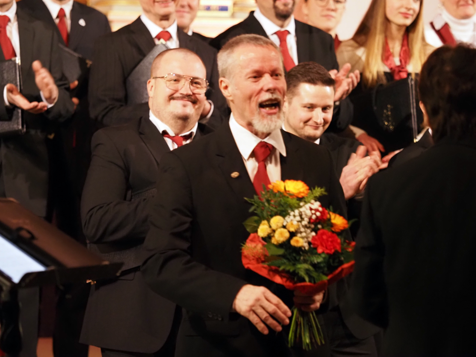 Das Konzertprogramm bot eine abwechslungsreiche Mischung aus Ensemblestücken, einem Gitarrenstück von unserem Bass-Sänger Marius, instrumental begleiteten Liedern, stimmungsvollen Kanons wie „Ding dong bells“ – bei dem das Publikum fröhlich mitsang – und natürlich vielen a cappella vorgetragenen Melodien. Neben bekannten Klassikern wie „Tausend Sterne sind ein Dom“ oder „Da pacem domine“ sorgte besonders unser neu einstudierter Chorsatz von „O Tannenbaum“ in einem Arrangement von Martin Carbow für Begeisterung. Als der letzte Ton verklungen war, würdigte das Publikum den Abend mit stehenden Ovationen. Die Stimmung gipfelte in einer gemeinsamen Zugabe: „Sind die Lichter angezündet“ – ein berührender Moment des Miteinanders, der den Abend unvergesslich machte.