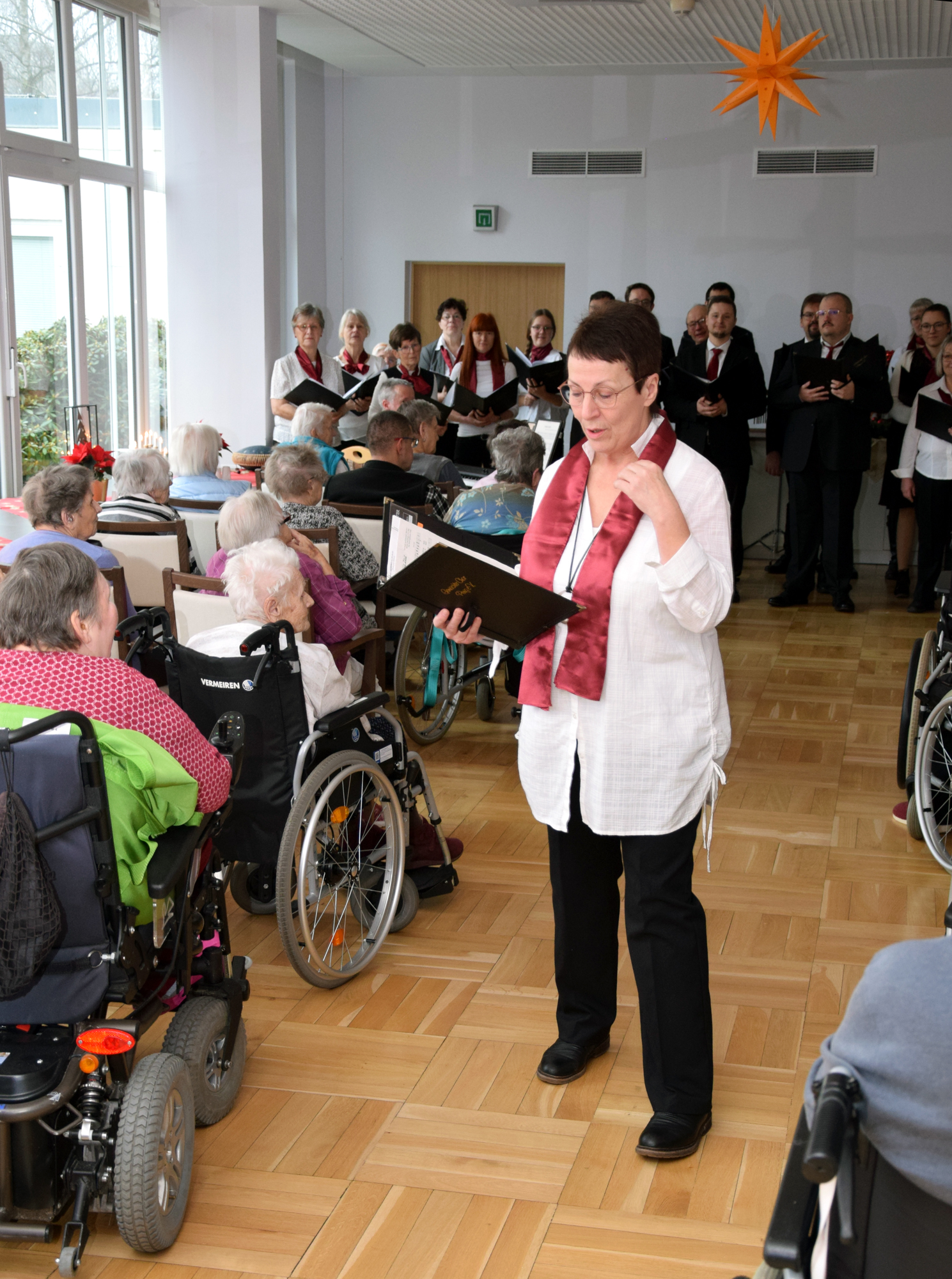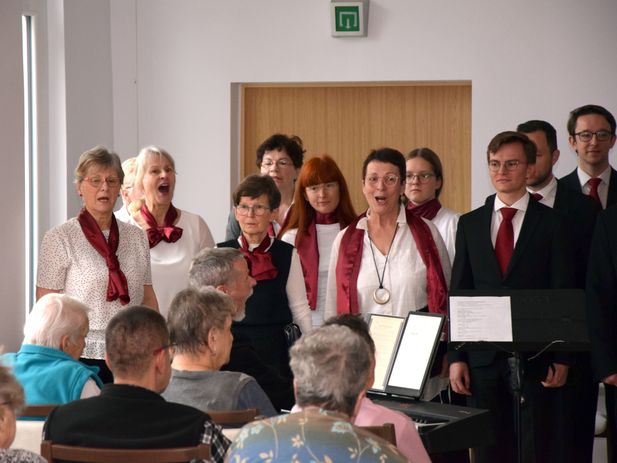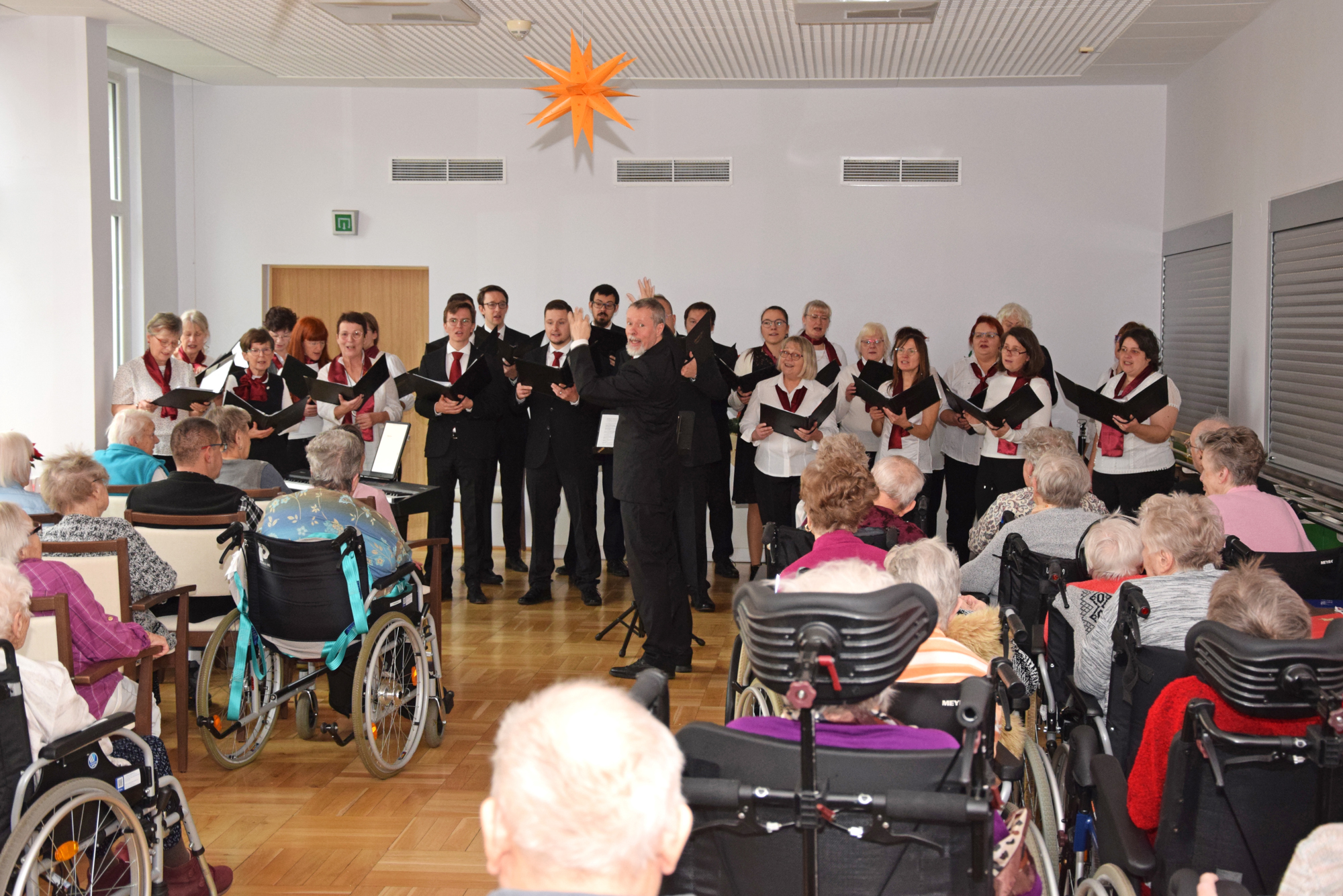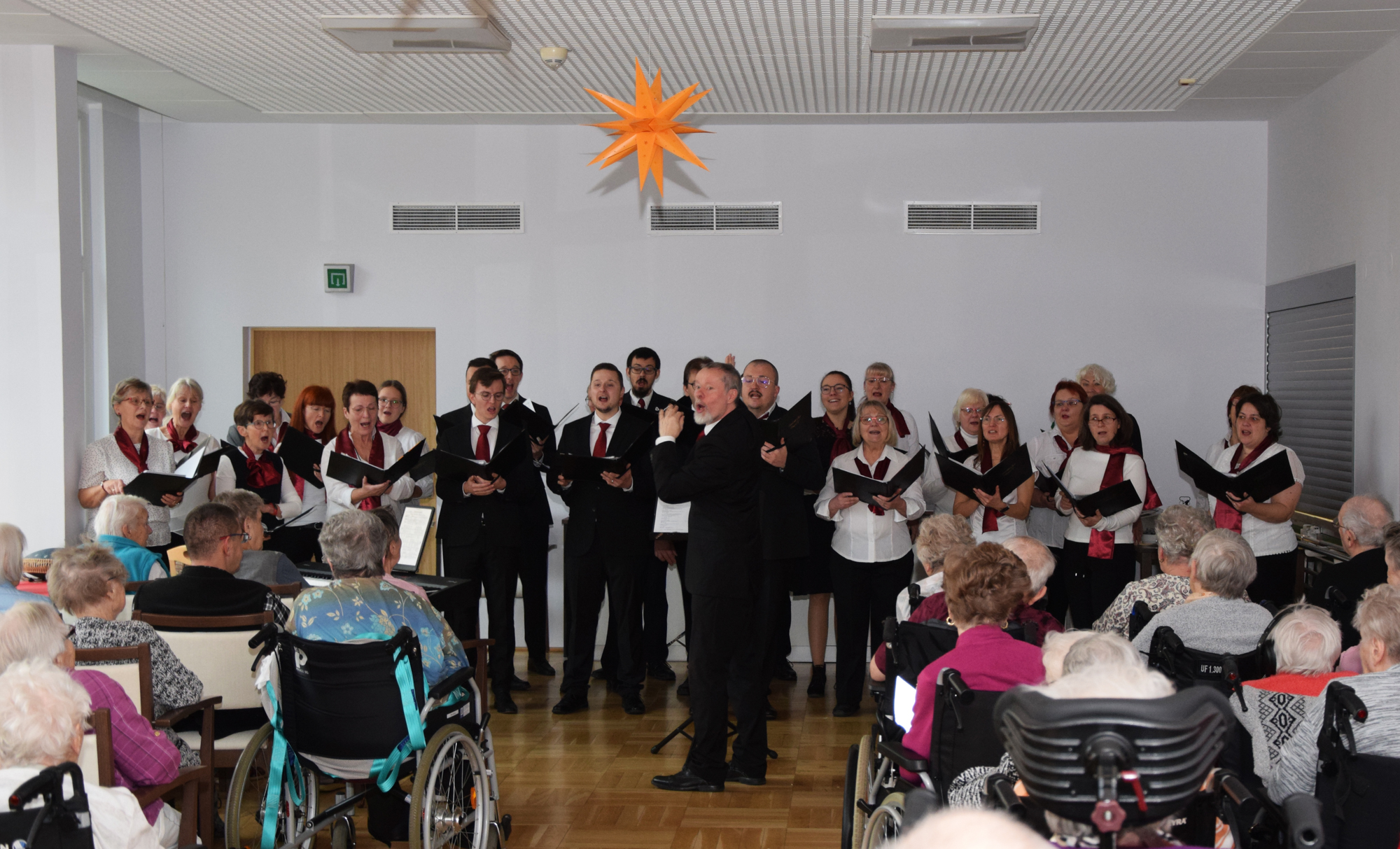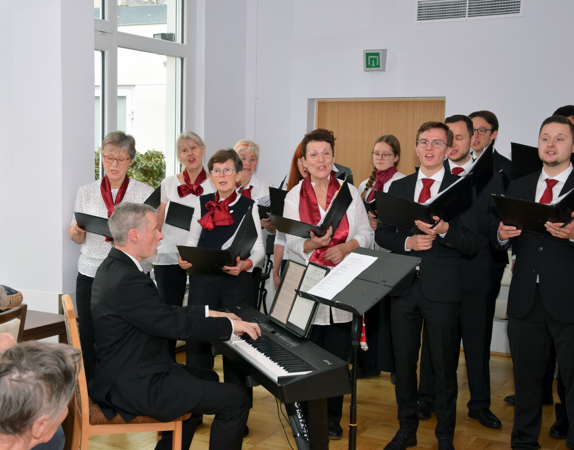 Mit einer schönen und sorgfältig ausgewählten Liedauswahl aus altbekannten Weihnachtsliedern – darunter „O du fröhliche“ und das wohl schönste Weihnachtslied „Stille Nacht, heilige Nacht“ – wurde die Vorfreude auf Weihnachten spürbar. Besonders berührend war, dass auch der zur Weihnachtszeit gegründete Heimbewohner-Chor mit einstimmte und den Auftritt zu etwas ganz Besonderem machte.