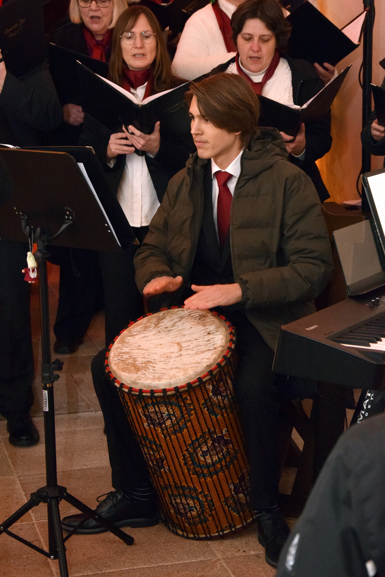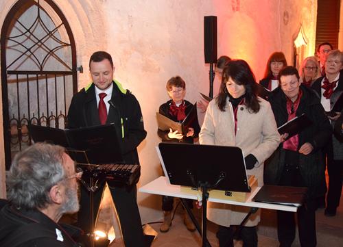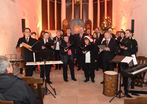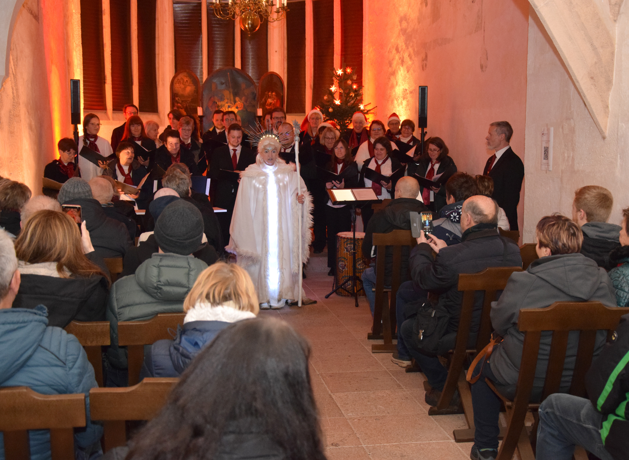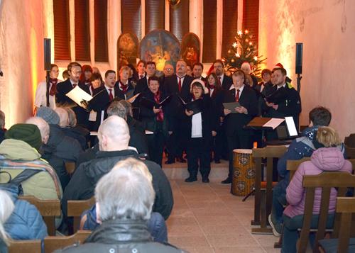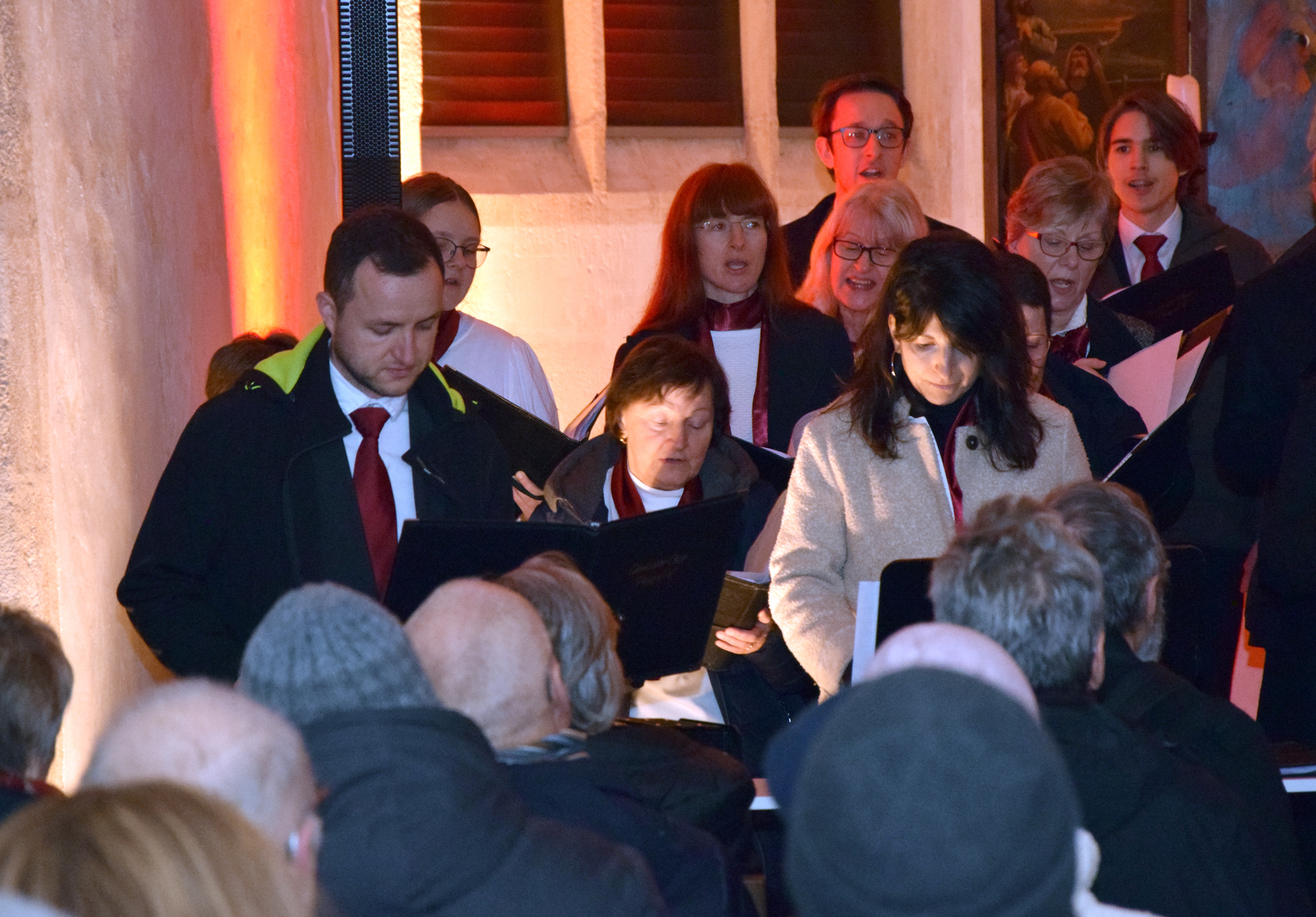 So durften auch wir dieses Jahr mit unseren Stimmen die Besucher in der kleinen, hübschen Kapelle in verzaubernde und vor allem besinnliche, vorweihnachtliche Stimmung versetzen. Mit Liedern wie „Gaudete“, „Leuchte, mein Licht“ oder „Carol of the Bells“ überraschten wir sicher manch zufälligen Zuhörer, nicht nur wegen der Begleitinstrumente wie einer afrikanischen Basstrommel oder der zwei Glockenspiele. Doch gerade die leisen und ruhigen Lieder wie „O du stille Zeit“ oder „Esti dal“ wirkten im besonderen Hall und Klang des alten Gemäuers um so stärker und beeindruckten die Zuschauer auf meist unerwartete Weise.