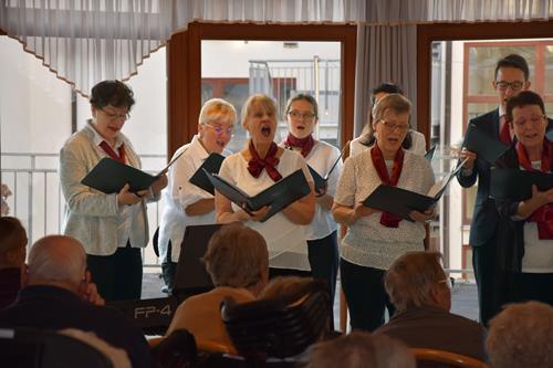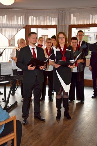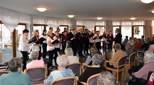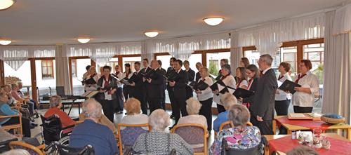 durch das Programm führte. Die musikalische Unterstützung kam wieder von den selbst sangeskräftigen Bewohnerinnen und Bewohnern