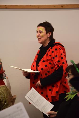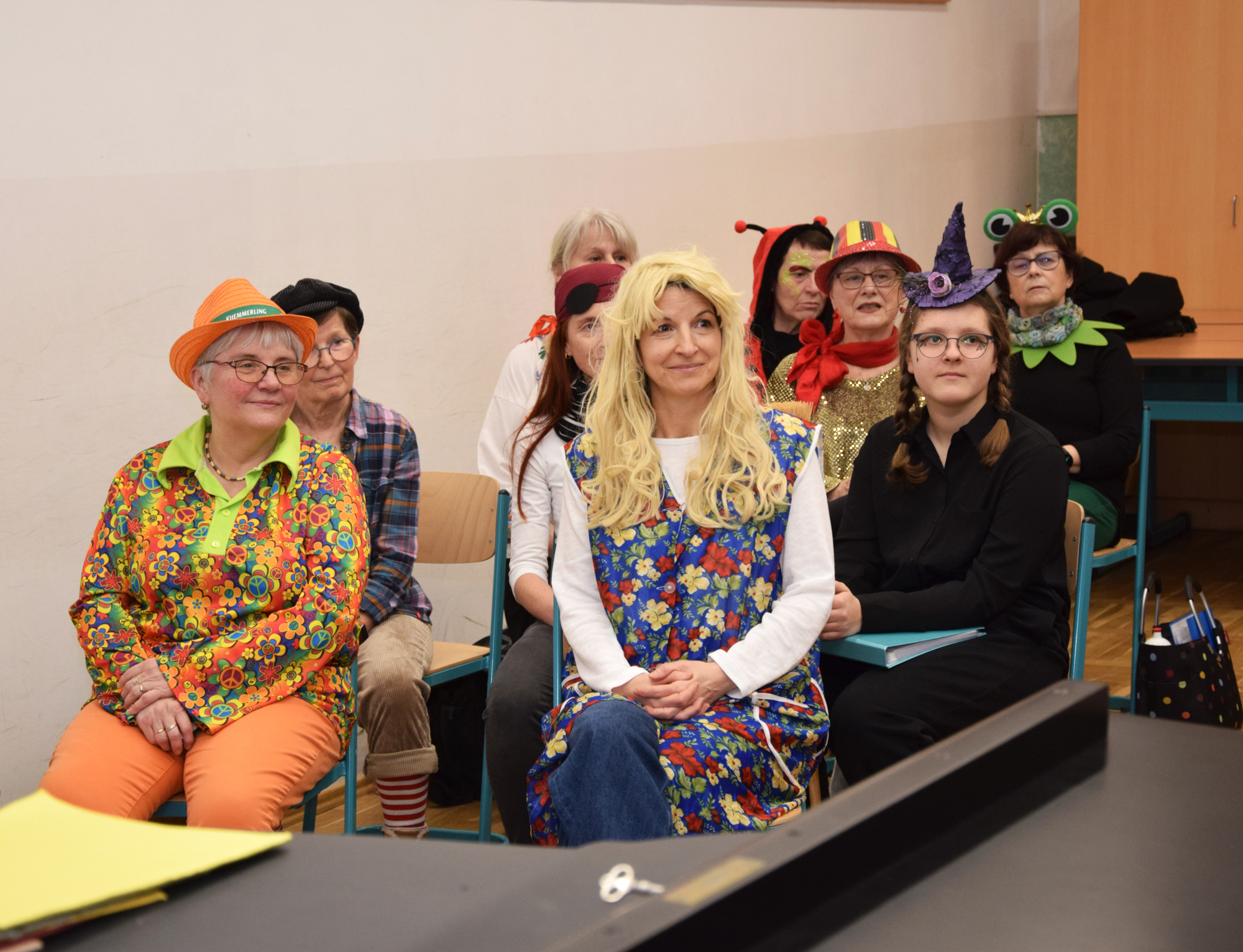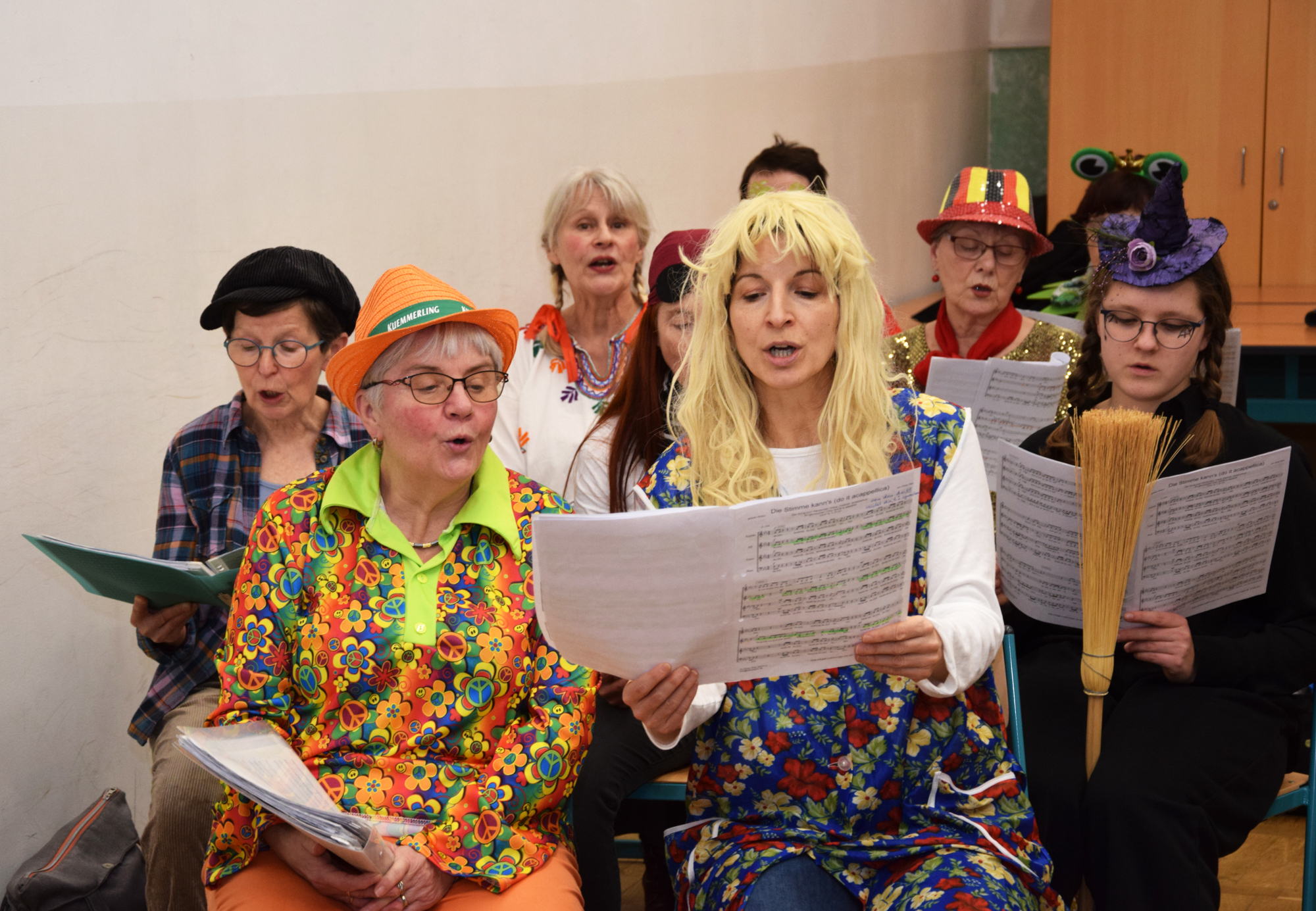 sich viele Sängerinnen und Sänger fantasievoll kostümiert. Mit bunten Hüten, lustigen Brillen und kreativen Verkleidungen wurde nicht nur gesungen, sondern auch herzlich gelacht – der Spaß an der Faschingszeit war allen deutlich anzumerken.