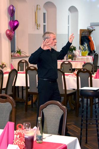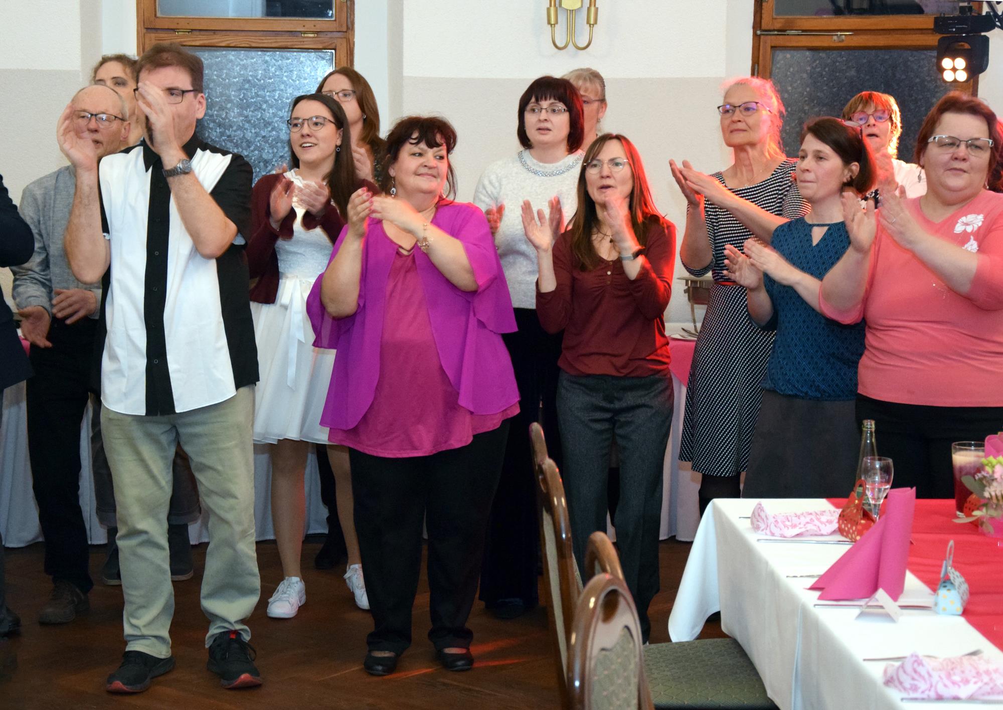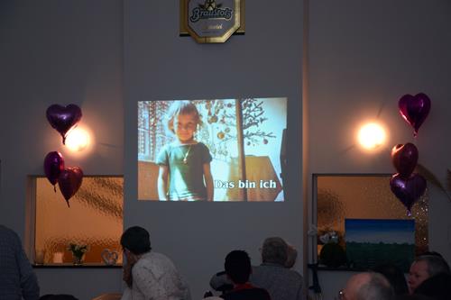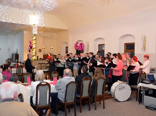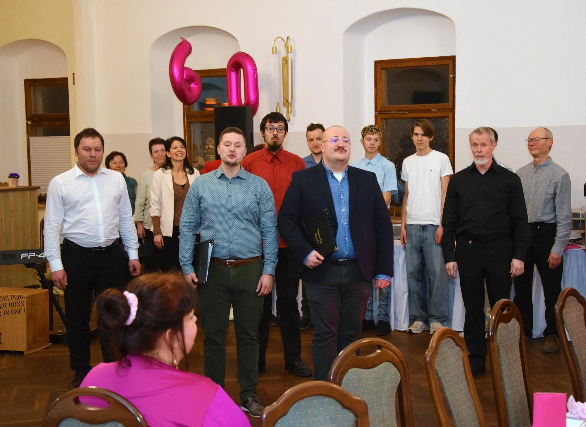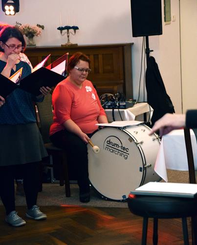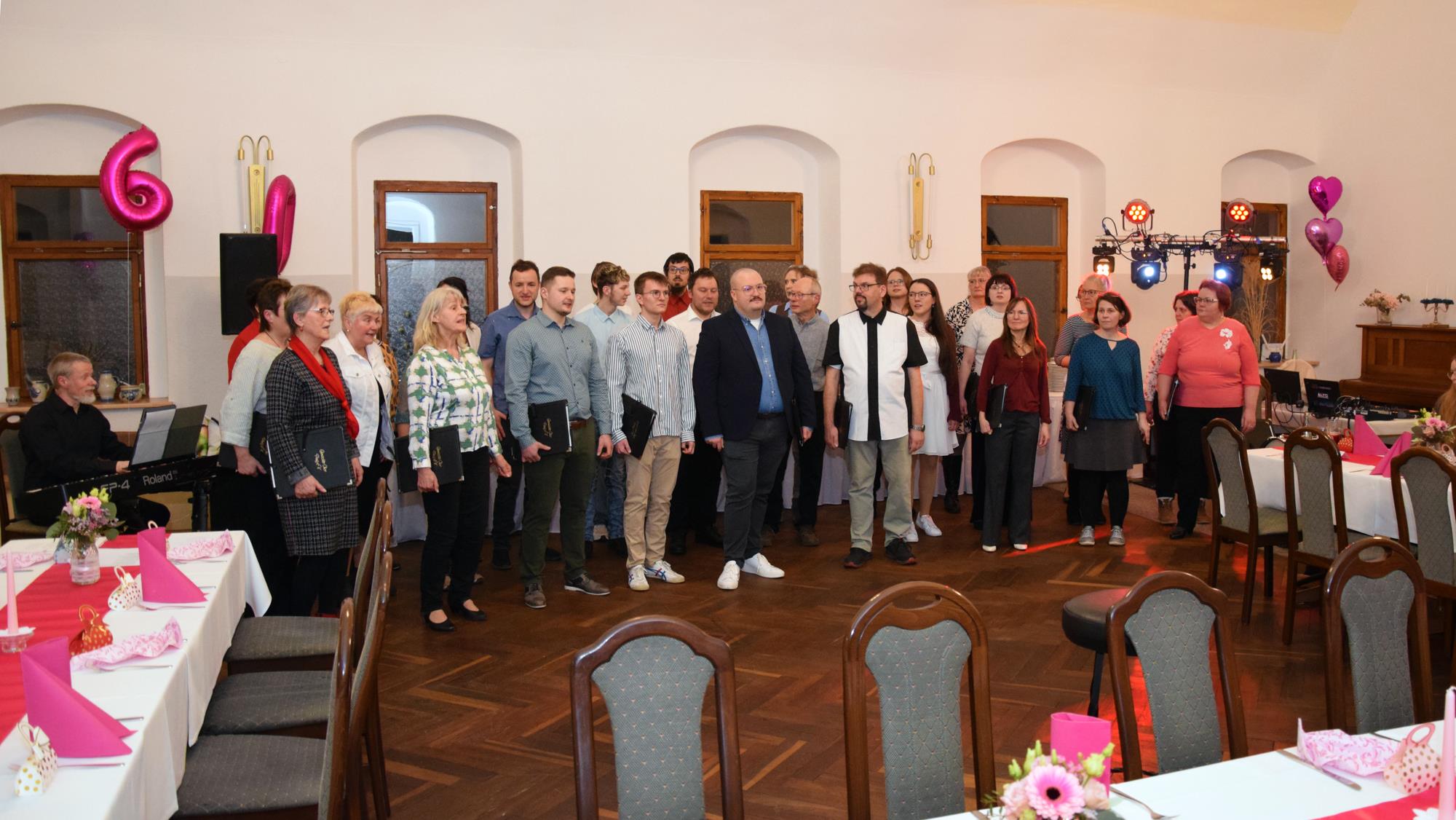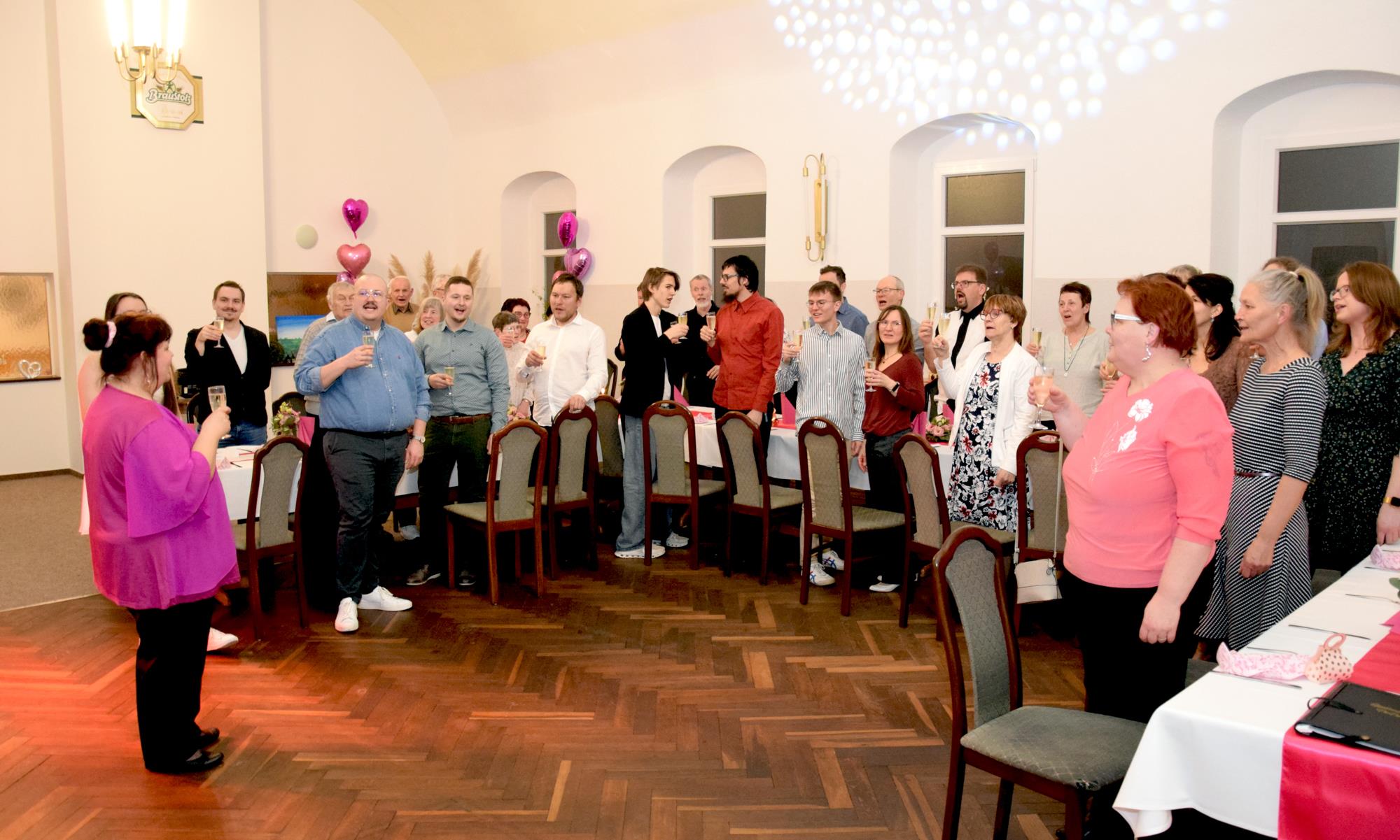 Wenn ein so wertvolles Chormitglied einen runden Geburtstag feiert, bereitet es uns besonders große Freude, diese Party mit einem kleinen Privatkonzert, gespickt mit den Lieblings- und ein paar Überraschungsliedern der Jubilarin, zu bereichern. Dazu gehören unter anderem „Auf der Suche“ und „Die Stimme kann's“ – beides Stücke vom Komponisten und Songwriter Oliver Gies, welche das Geburtstagskind offensichtlich ganz besonders schätzt. Mit den Liedern „Shake the bottle“ und „Klingende Speisekarte“ brachten wir Schwung und Spaß in unseren Auftritt, während das von Paul und Leonie vorgetragene „You raise me up“ für sehr berührende Momente sorgte. Bei „Bring me little water, Sylvie“ ließ es sich Simone nicht nehmen, den Zuhörerplatz in der ersten Reihe aufzugeben, sich zu ihren Sopranistinnen zu stellen und selbst mitzusingen und zu tanzen. Herrlich!