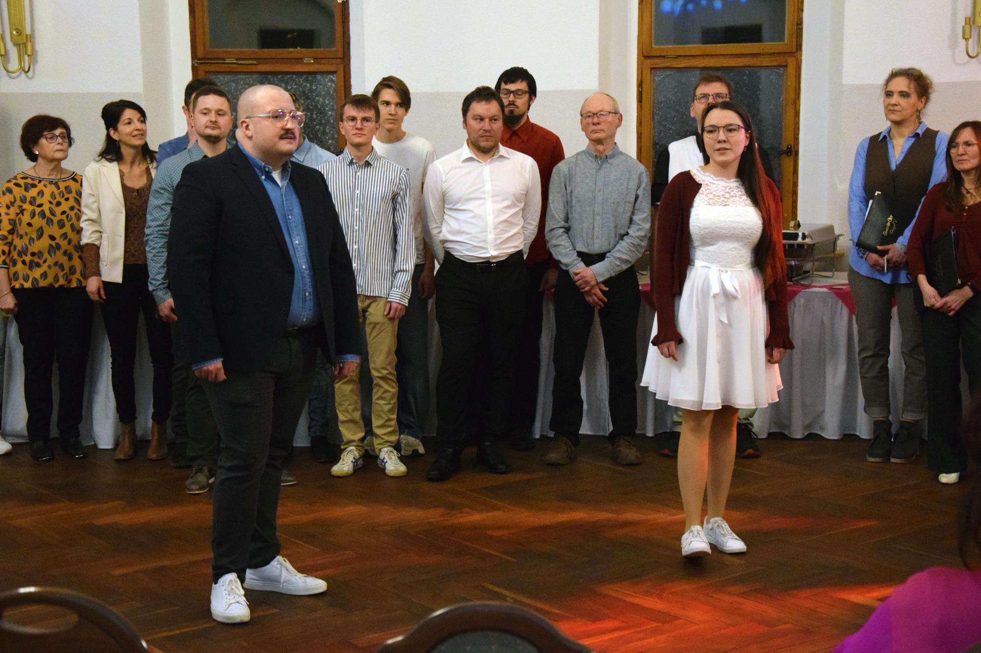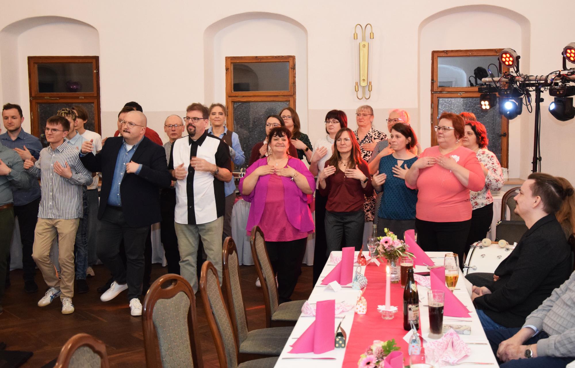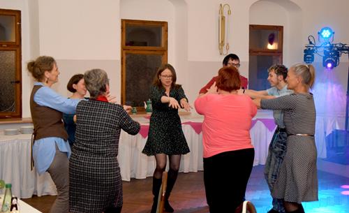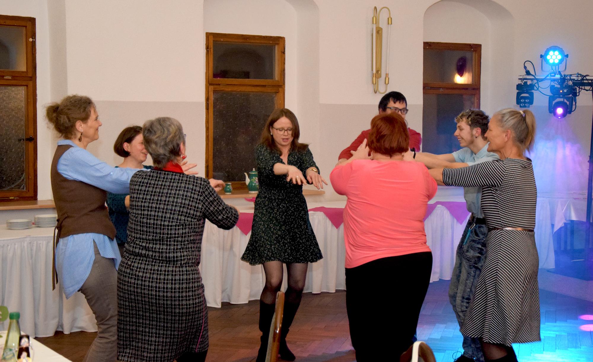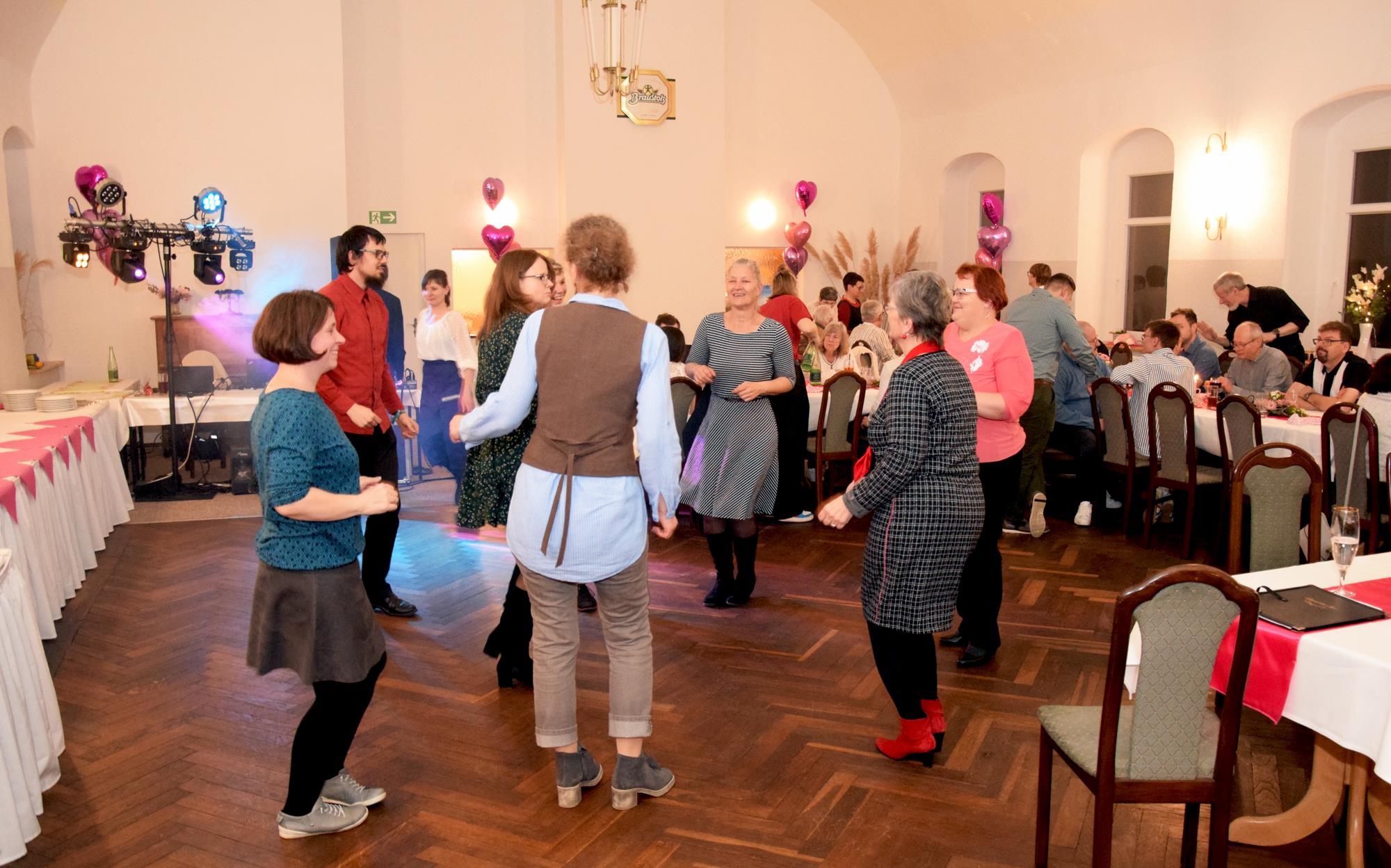 Wenn ein so wertvolles Chormitglied einen runden Geburtstag feiert, bereitet es uns besonders große Freude, diese Party mit einem kleinen Privatkonzert, gespickt mit den Lieblings- und ein paar Überraschungsliedern der Jubilarin, zu bereichern. Dazu gehören unter anderem „Auf der Suche“ und „Die Stimme kann's“ – beides Stücke vom Komponisten und Songwriter Oliver Gies, welche das Geburtstagskind offensichtlich ganz besonders schätzt. Mit den Liedern „Shake the bottle“ und „Klingende Speisekarte“ brachten wir Schwung und Spaß in unseren Auftritt, während das von Paul und Leonie vorgetragene „You raise me up“ für sehr berührende Momente sorgte. Bei „Bring me little water, Sylvie“ ließ es sich Simone nicht nehmen, den Zuhörerplatz in der ersten Reihe aufzugeben, sich zu ihren Sopranistinnen zu stellen und selbst mitzusingen und zu tanzen. Herrlich!